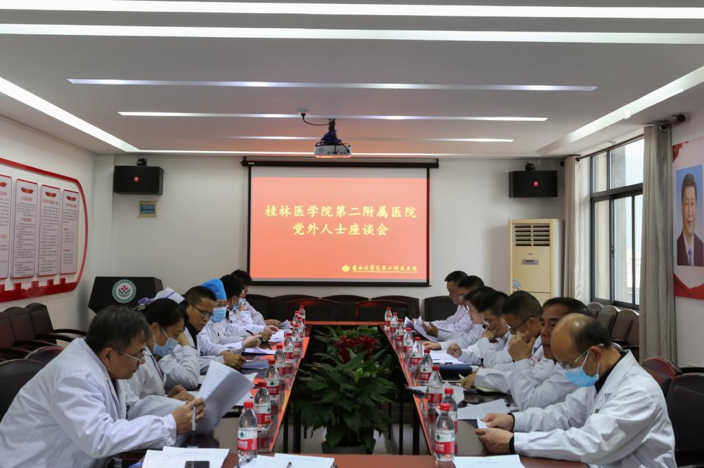 12月2日下午,桂林医学院第二附属医院召开2020年党外人士座谈会。医院党委书记文琼仙、党委副书记刘梦青、医院各民主党派、无党派人士代表参加了座谈会。