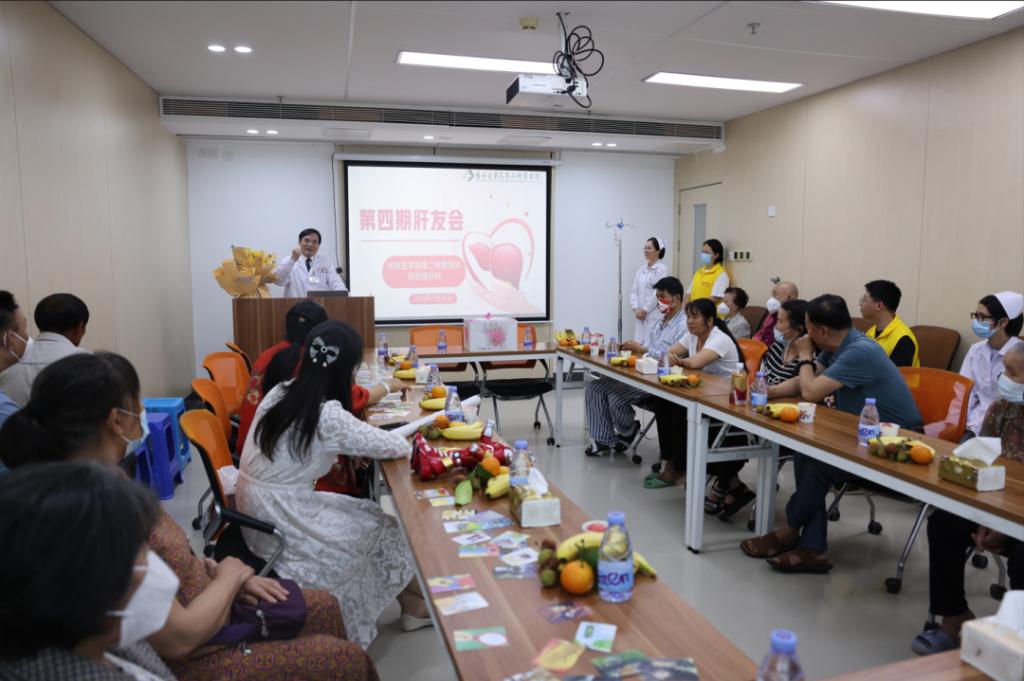 5月26日,桂林医学院第二附属医院肝胆胰外科举办了第四期肝友会活动。本次活动由首席专家梅铭惠教授、姚红兵教授亲自莅临指导,邀请了老病友阳女士、在院病人及家属共30余人参与。