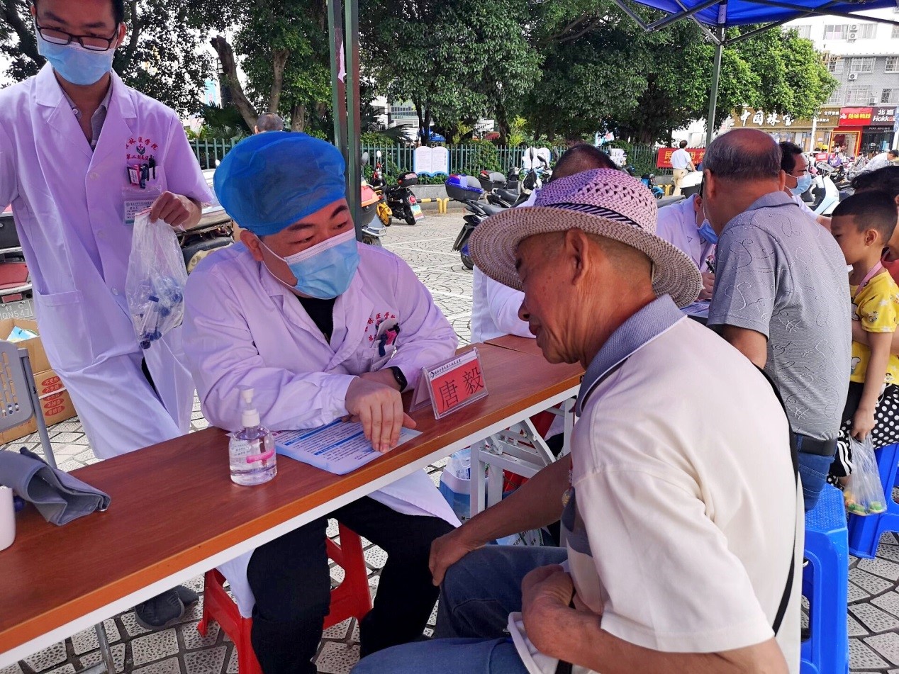 2021-052021年是中国共产党成立 100 周年,桂林医学院第二附属医院积极围绕“我为群众办实事”开展系列活动,忠实践行为民服务宗旨,做群众身边的健康卫士。桂林医学院第二附院外科第一党支部、团委支部联合核医学科于2021年5月28日在临桂区金山广场组织“建党100周年•为群众办实事”暨“国际甲状腺知识宣传周”健康科普宣传、义诊活动。核医学在甲状腺疾病中的诊断与治疗方面有重要的临床价值。核医学科团队积极参加了此次活动。“...
